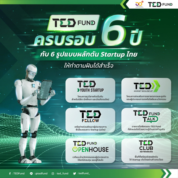 ฉลองครบรอบ 6 ปีแห่งการผลักดันชาว Startup ไทยให้ทำตามฝันได้สำเร็จ ไปกับกองทุนพัฒนาผู้ประกอบการเทคโนโลยีและนวัตกรรม (TED Fund)