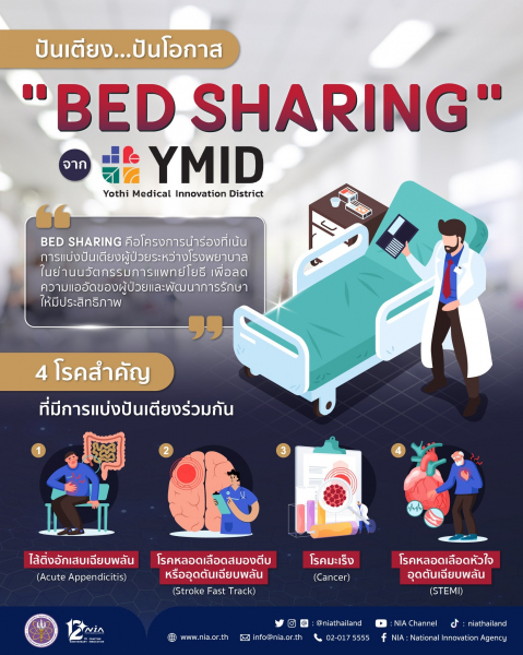 ไม่ใช่แค่วิกฤติโรคระบาดเท่านั้น ที่มีการบริหารจัดการเตียงข้ามสถานพยาบาลเพื่อรองรับผู้ป่วยที่มีจำนวนเพิ่มมากขึ้น ยังมีโรคอื่นๆ อีกเป็นจำนวนมากที่มีความเสี่ยงต่อชีวิตผู้คน และต้องการการรักษาหรือการรองรับผู้ป่วยที่ทันท่วงทีเช่นเดียวกัน นี่จึงเป็นอีกหนึ่งวาระสำคัญที่สถานพยาบาล ใน “ย่านนวัตกรรมการแพทย์ หรือ YMID” ซึ่งนับเป็นต้นแบบย่านนวัตกรรมการแพทย์ของกรุงเทพฯ ที่ประกอบด้วยสถานพยาบาลในเครือข่ายหลายแห่งได้แก่ รพ.รามาธิบดี รพ.พระมงกุฎเกล้า รพ.ราชวิถี สถาบันมะเร็งแห่งชาติ ฯลฯ ได้เดินหน้าทำงานร่วมกัน ภายใต้โครงการ “Bed Sharing” ด้วยการแบ่งปันเตียงผู้ป่วยข้ามสถานพยาบาล เพื่อรองรับผู้ป่วยในกลุ่มโรคเปราะบางที่มีจำนวนมากขึ้นมา