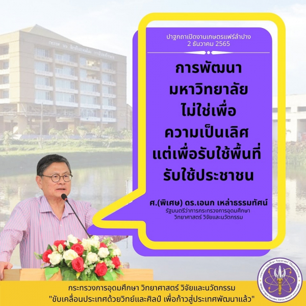ปาฐกถาวันเปิดงานเกษตรแฟร์ลำปาง โดย ศ.(พิเศษ) ดร.เอนก เหล่าธรรมทัศน์ รัฐมนตรีกระทรวง อว.