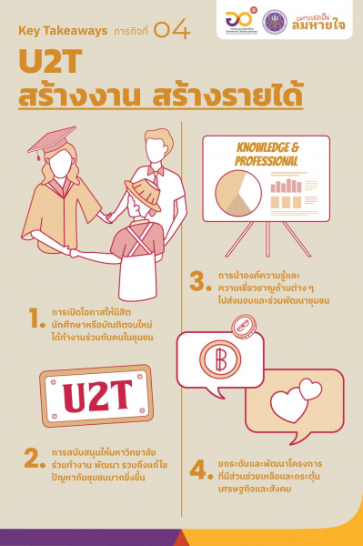 ภารกิจที่ 4 U2T สร้างงาน สร้างรายได้เสริมสร้างความรู้สู่ชุมชนพัฒนา