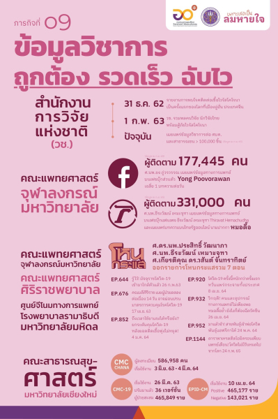 จากใจชาว อว. ภารกิจที่ 9 ข้อมูลวิชาการถูกต้อง รวดเร็ว ฉับไว ชาว อว. ส่งต่อข้อมูลวิชาการเพื่อประชาชน “ถอดบทเรียนการต่อสู้กับโควิด-19” ภารกิจที่ 8 หน่วยสนับสนุน อว. (อว.พารอด) สร้างความมั่นคงสู่ความพร้อมทุกสถานการณ์