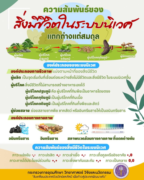 ในธรรมชาติมีสิ่งมีชีวิตอยู่หลากหลายชนิด ซึ่งมีลักษณะที่แตกต่างกันไป แต่สิ่งมีชีวิตเหล่านี้ก็สามารถอาศัยอยู่ในพื้นที่บริเวณเดียวกันได้อย่างสมดุล โดยมีความสัมพันธ์กันในลักษณะต่างๆ เกิดเป็นความสัมพันธ์ของ สิ่งมีชีวิตในระบบนิเวศ