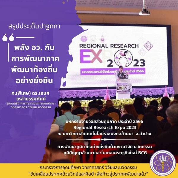 อว.สรุปย่อปาฐกถาของ รมว.อว. และ คำกล่าวของผู้บริหารระดับสูงจาก 3 หน่วยงานร่วมจัด “มหกรรมงานวิจัยส่วนภูมิภาค ประจำปี 2566”