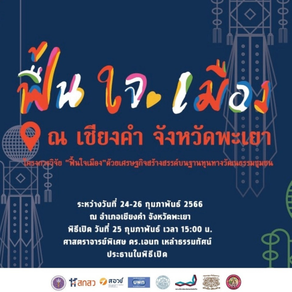 "ฟื้นใจเมือง" ชุมชนไทลื้อ อ.เชียงคำ จ.พะเยา จากงานวิจัยสู่การพัฒนาพื้นที่ด้วยทุนทางวัฒนธรรมเพื่อ...ฟื้นใจเมือง ด้วยการมีส่วนร่วมของประชาคมในชุมชน 1 ในโครงการพัฒนาย่านวัฒนธรรมชุมชน และ การฟื้นฟูวัฒนธรรมประเพณี และ สร้างวัฒนธรรมใหม่เพื่อกระตุ้นเศรษฐกิจในพื้นที่