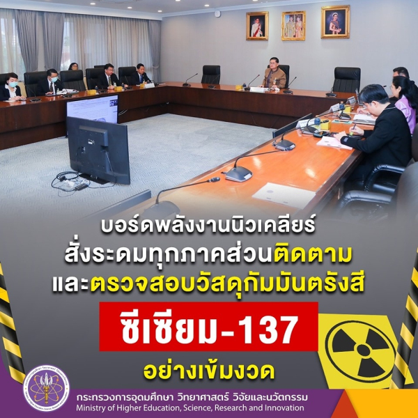 ☢️บอร์ดพลังงานนิวเคลียร์สั่งระดมทุกภาคส่วนติดตามและตรวจสอบวัสดุกัมมันตรังสีซีเซียม-137 อย่างเข้มงวด☢️