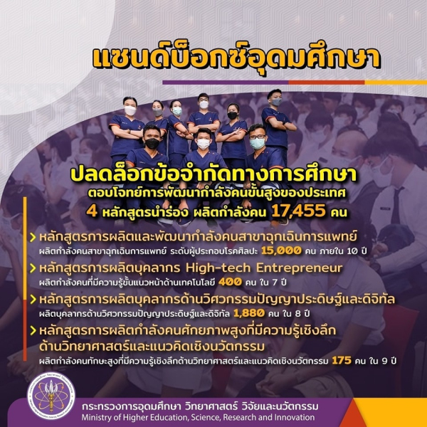 เป็นหน่วยงานของรัฐที่จัดตั้งขึ้นเพื่อขับเคลื่อนการอุดมศึกษาไทย วิทยาศาสตร์ วิจัยและนวัตกรรม ไปสู่มาตรฐานในระดับสากล และเพิ่มอันดับความสามารถการแข่งขันในระดับนานาชาติอย่างยั่งยืน ไม่ได้มีวัตถุประสงค์เพื่อแสวงหากำไร หากท่านพบว่ามีข้อมูลใดๆ ที่ละเมิดทรัพย์สินทางปัญญาปรากฏอยู่ในเว็บไซต์นี้ โปรดแจ้งให้ทราบ เพื่อดำเนินการแก้ปัญหาดังกล่าวโดยเร็วที่สุดต่อไป