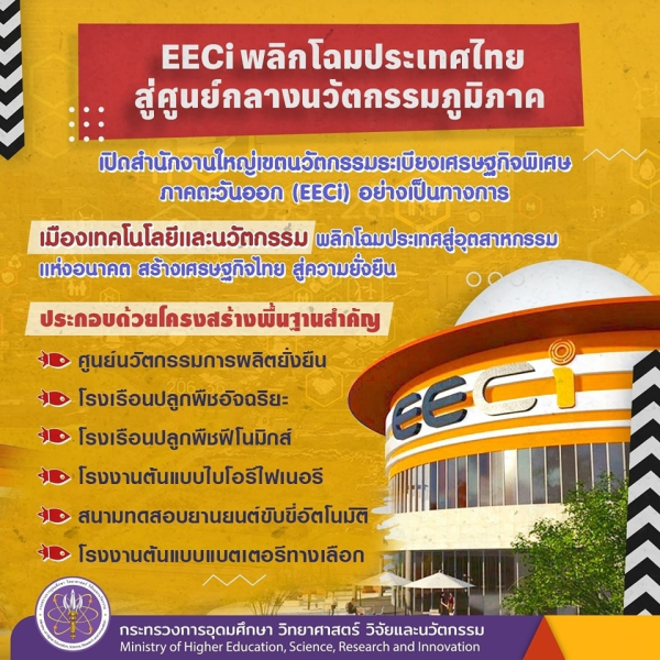 อว. 3 ปีกับการปฏิรูปวิทยาศาสตร์ วิจัยและนวัตกรรม EECi พลิกโฉมประเทศไทย สู่ศูนย์กลางนวัตกรรมภูมิภาค “เมืองเทคโนโลยีและนวัตกรรม พลิกโฉมประเทศสู่อุตสาหกรรมแห่งอนาคต สร้างเศรษฐกิจไทยสู่ความยั่งยืน”