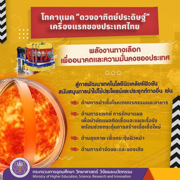อว. โดย สถาบันเทคโนโลยีนิวเคลียร์แห่งชาติ (องค์การมหาชน) (สทน.) ดำเนินการติดตั้งและเดินเครื่องปฏิกรณ์นิวเคลียร์ฟิวชันเครื่องแรกของไทย คาดพร้อมดำเนินการเดือนมีนาคมปี 2566