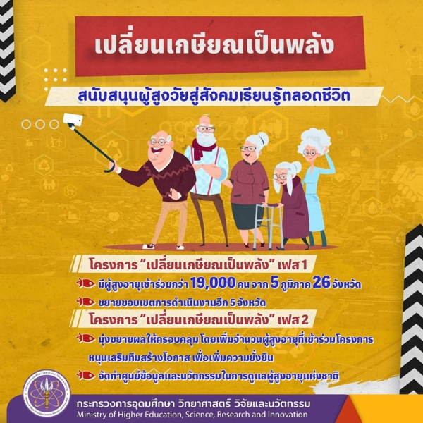 อว. 3 ปีกับการปฏิรูปวิทยาศาสตร์ วิจัยและนวัตกรรม  เปลี่ยนเกษียณเป็นพลัง “สนับสนุนผู้สูงวัยสู่สังคมเรียนรู้ตลอดชีวิต”