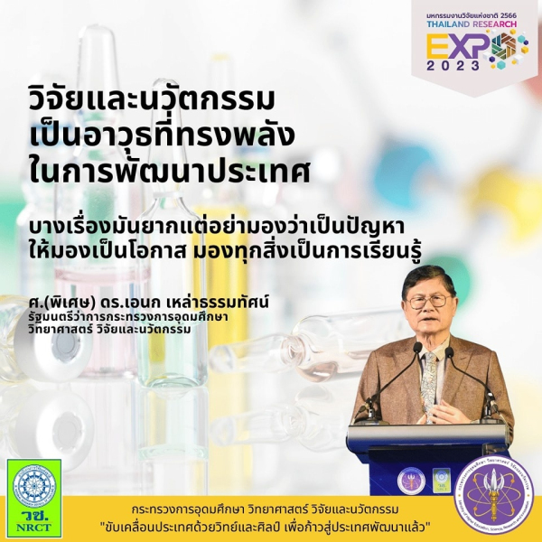 ศ.(พิเศษ) ดร.เอนก เหล่าธรรมทัศน์ รมว.อว. เป็นประธาน และ กล่าวปาฐกถาเปิดงาน “มหกรรมงานวิจัยแห่งชาติ 2566”