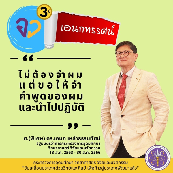 ผมขอบคุณ ท่านผู้บริหาร และ บุคลากรทุกภาคส่วน ทุกหน่วยงานในกระทรวง อว.ที่ร่วมแรงร่วมใจกันทำงานกับผมมาตลอด 3 ปี
