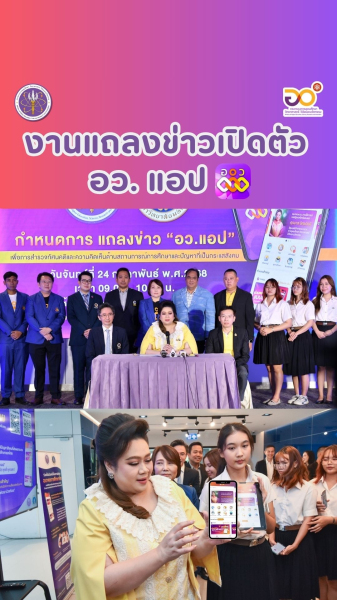 กระทรวง อว. เปิดตัว “อว.แอป” แอปพลิเคชันในระดับกระทรวง เพื่อนิสิตและนักศึกษาคณาจารย์ ผู้ปกครอง ผู้ประกอบการ และประชาชนทั่วไป