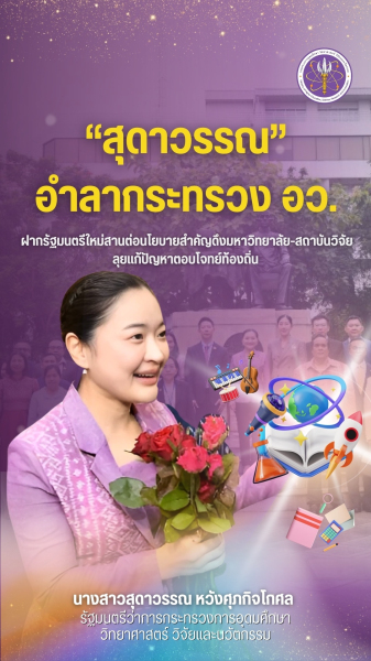 “สุดาวรรณ” อำลากระทรวง อว. ฝากสานต่อนโยบายสำคัญ เมื่อวันที่ 12 ก.ย. 2568 น.ส.สุดาวรรณ หวังศุภกิจโกศล รมว.การอุดมศึกษา วิทยาศาสตร์ วิจัยและนวัตกรรม (อว.) พร้อมคณะทีมการเมือง ได้แก่ น.ส.พลอย ธนิกุล ผู้ช่วย รมว. และนายวิเชียร สุขสร้อย เลขานุการ รมว. เข้าร่วมพิธีอำลาตำแหน่ง ณ อาคารอุดมศึกษา 2 และอาคารพระจอมเกล้า กระทรวง อว. มีผู้บริหาร ข้าราชการ และเจ้าหน้าที่เข้าร่วมอย่างคับคั่ง ในพิธี น.ส.สุดาวรรณ กล่าวขอบคุณบุคลากรทุกฝ่ายที่ร่วมมือทำงานอย่างเต็มที่ แม้จะดำรงตำแหน่งเพียงกว่า 2 เดือน แต่ได้เห็นถึงความมุ่งมั่นและศักยภาพของทุกคนในการพัฒนาการอุดมศึกษา วิทยาศาสตร์ วิจัย และนวัตกรรมเพื่อประชาชน เธอย้ำให้สานต่อภารกิจสำคัญ ทั้งการพัฒนากำลังคน ยกระดับงานวิจัยสู่สากล สร้างความร่วมมือกับอุตสาหกรรม และนำองค์ความรู้ลงสู่พื้นที่เพื่อเปิดโอกาส ลดเหลื่อมล้ำ และพัฒนาเศรษฐกิจสังคมอย่างยั่งยืน ศ.ดร.ศุภชัย ปทุมนากุล ปลัดกระทรวง อว. กล่าวยกย่องรัฐมนตรีสุดาวรรณว่า แม้ทำงานในระยะสั้น แต่ได้แสดงให้เห็นถึงแนวทางที่ชัดเจนและเป็นแรงบันดาลใจ พร้อมยืนยันว่าบุคลากรจะสานต่อพันธกิจเพื่อความก้าวหน้าของประเทศ ผลงานสำคัญที่ขับเคลื่อนในช่วงดำรงตำแหน่ง 1. Soft Power ไทยสู่สากล – นำผลงานวิจัยสู่ชีวิตจริง สนับสนุนกำลังคนทักษะสูง เปิดเครือข่ายความร่วมมือทั้งกายภาพและดิจิทัล 2. หลักสูตรแซนด์บ็อกซ์ใหม่ – อนุมัติ 5 หลักสูตรระดับโท-เอก เช่น ไมโครอิเล็กทรอนิกส์ วิทยาการข้อมูล ระบบราง เภสัชศาสตร์ เทคโนโลยีดิจิทัลและ AI ด้านสุขภาพ 3. ศูนย์ช่วยเหลือผู้ประสบภัยชายแดนไทย-กัมพูชา – มหาวิทยาลัยในพื้นที่รองรับผู้ประสบภัยกว่า 7,600 คน 4. จัด War Room น้ำท่วม–พายุวิภา – ใช้ข้อมูลน้ำและดาวเทียมประเมินพื้นที่เสี่ยง ระดมมหาวิทยาลัยช่วยเหลือประชาชน 5. ยกระดับอุทยานวิทยาศาสตร์ภูมิภาค (RSP) – พัฒนาเป็นศูนย์กลางธุรกิจเทคโนโลยีและนวัตกรรมระดับพื้นที่ 6. เปิดตัว TCASFolio – แฟ้มสะสมผลงานมาตรฐานฟรีสำหรับ TCAS69 พร้อมสอบสำรองและช่วยค่าสมัคร ลดภาระผู้ปกครอง 7. ผลักดัน “อว. For Water” – เตรียมสมุดปกขาวแก้ปัญหาน้ำอย่างยั่งยืน บูรณาการองค์ความรู้สู่การใช้จริง นโยบายต่อเนื่องที่ฝากไว้ * โครงการ “1 มหาวิทยาลัย 1 ภารกิจเพื่อท้องถิ่น” ให้มหาวิทยาลัยและสถาบันวิจัยแก้ปัญหาเศรษฐกิจ–สังคมในพื้นที่ * พัฒนากำลังคน ลดความเหลื่อมล้ำ และให้ทุนการศึกษา เช่น ทุนสำหรับนักศึกษาพิการ เยาวชนพื้นที่ห่างไกล ทุน 3 จังหวัดชายแดนใต้ รวมกว่า 7,900 ทุน * บริหารทุนวิจัยอย่างรัดกุม เพื่อประโยชน์ครอบคลุมทุกมิติ พิธีอำลาผ่านไปอ