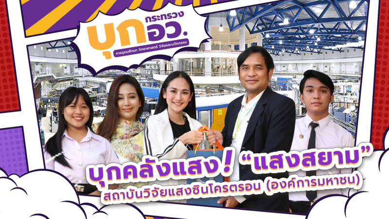 บุกกระทรวง อว. EP 2 : บุกคลังแสง! "แสงสยาม" สถาบันวิจัยแสงซินโครตรอน (องค์การมหาชน) สถาบันวิจัยแสงซินโครตรอน (องค์การมหาชน) (อังกฤษ: Synchrotron Light Research Institute (Public Organization)) เป็นองค์การมหาชนไทย ภายใต้การกำกับดูแลของกระทรวงการอุดมศึกษา วิทยาศาสตร์ วิจัยและนวัตกรรม สืบทอดจาก "ศูนย์ปฏิบัติการวิจัยเครื่องกำเนิดแสงซินโครตรอนแห่งชาติ" ก่อตั้งขึ้นเมื่อวันที่ 5 มีนาคม พ.ศ. 2539 มีสำนักงานตั้งอยู่ภายในบริเวณมหาวิทยาลัยเทคโนโลยีสุรนารี จ.นครราชสีมา