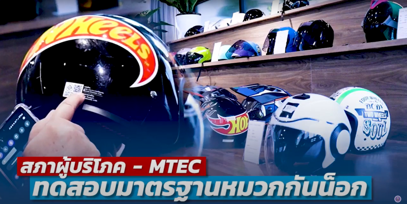 อว. โดย MTEC - สภาผู้บริโภค เปิดผลทดสอบ : หมวกกันน็อก ยี่ห้อที่ได้มาตรฐาน สภาองค์กรของผู้บริโภค ร่วมกับศูนย์เทคโนโลยีโลหะและวัสดุแห่งชาติ (เอ็มเทค) สวทช. จัดงานแถลงข่าว “เปิดผลทดสอบหมวกกันน็อก ยี่ห้อไหนได้มาตรฐาน” เป็นการนำเสนอผลโครงการ “การออกแบบ พัฒนาเกณฑ์ประเมิน และทดสอบหมวกนิรภัยรถจักรยานยนต์” โดยสุ่มเลือกซื้อตัวอย่างหมวกนิรภัยที่มีวางจำหน่ายในท้องตลาดจำนวน 25 รุ่นตัวอย่าง นำไปทดสอบมาตรฐานด้านต่าง ๆ ในห้องปฏิบัติการ และผลจากการทดสอบปรากฏว่ามีหมวกนิรภัยผ่านการทดสอบมาตรฐาน 14 รุ่น และไม่ผ่านมาตรฐาน 11 รุ่น ประชาชนหรือผู้บริโภคสามารถเข้าไปดูผลการทดสอบของหมวกแต่ละรุ่นได้ที่ https://www.mtec.or.th/news-event/78861/