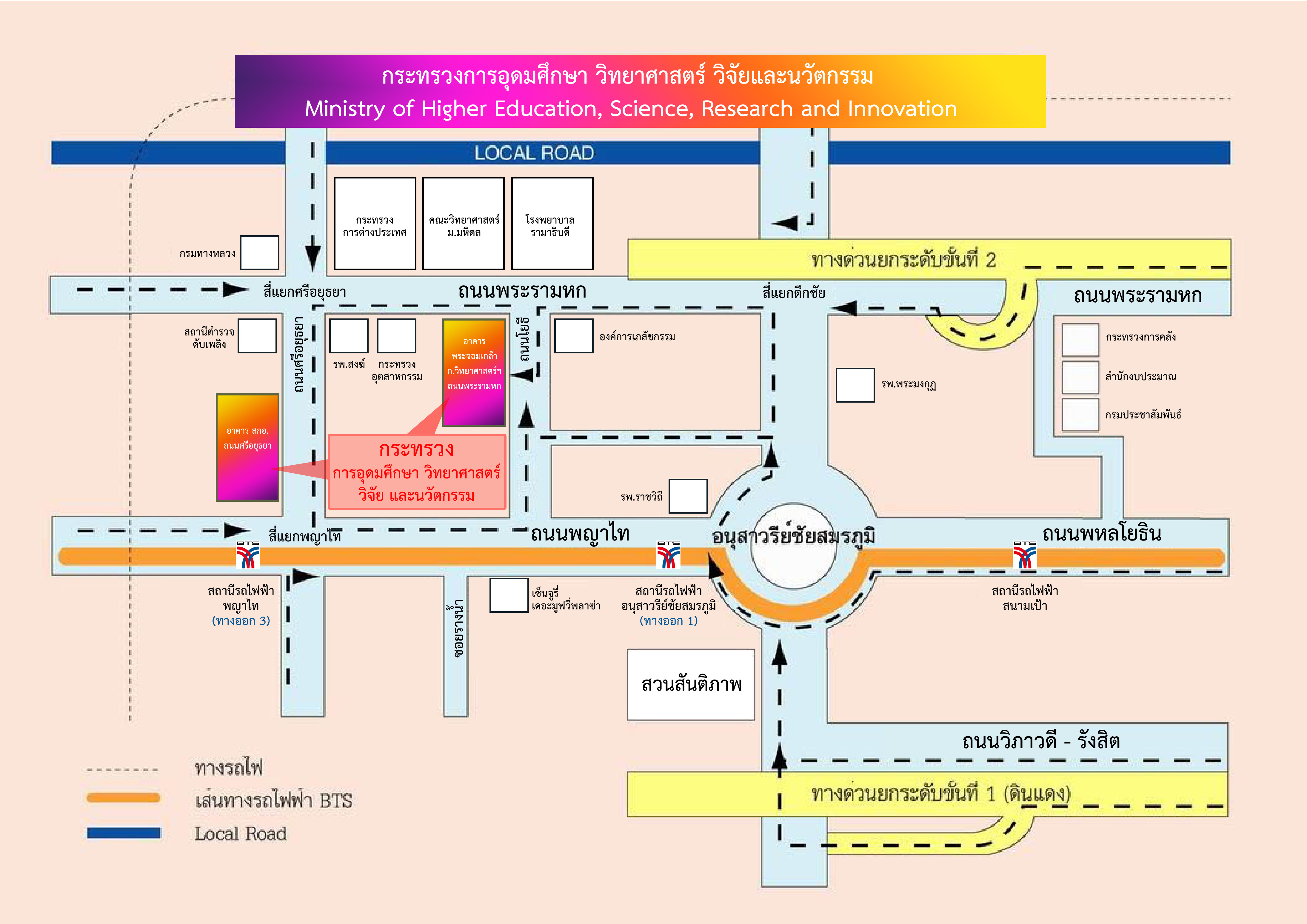 กระทรวงการอุดมศึกษา วิทยาศาสตร์ วิจัยและนวัตกรรม ถนนโยธี (อาคารพระจอมเกล้า)