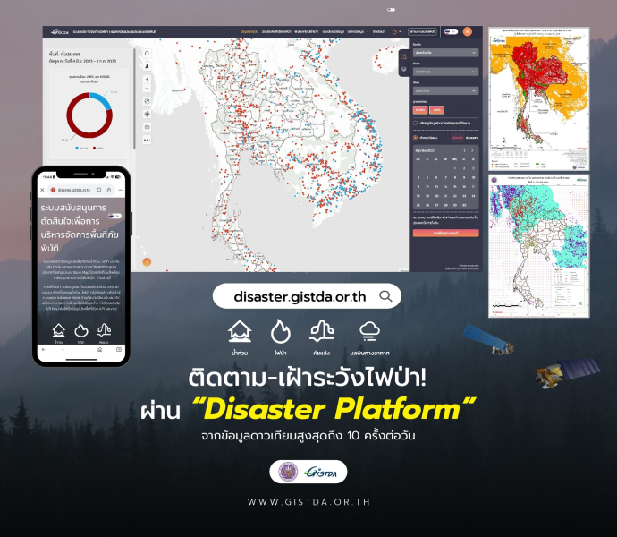โดย “Disaster Platform” เป็นระบบให้บริการข้อมูลเชิงพื้นที่ด้านน้ำท่วม ไฟป่า ภัยแล้ง และมลพิษทางอากาศ ผ่าน “เว็บแอพพลิเคชั่น https://disaster.gistda.or.th” ที่มีการนำเสนอภาพรวมสถานการณ์ภัยพิบัติล่าสุดของประเทศไทยในรูปแบบ Story Map ซึ่ง GISTDA ได้พัฒนาระบบดังกล่าวขึ้นเมื่อปี 2565 โดยปรับปรุงและยกระดับจากระบบเดิมที่ใช้งานมากว่า 15 ปี เพื่อให้ทันกับการเปลี่ยนแปลงของเทคโนโลยีในปัจจุบัน