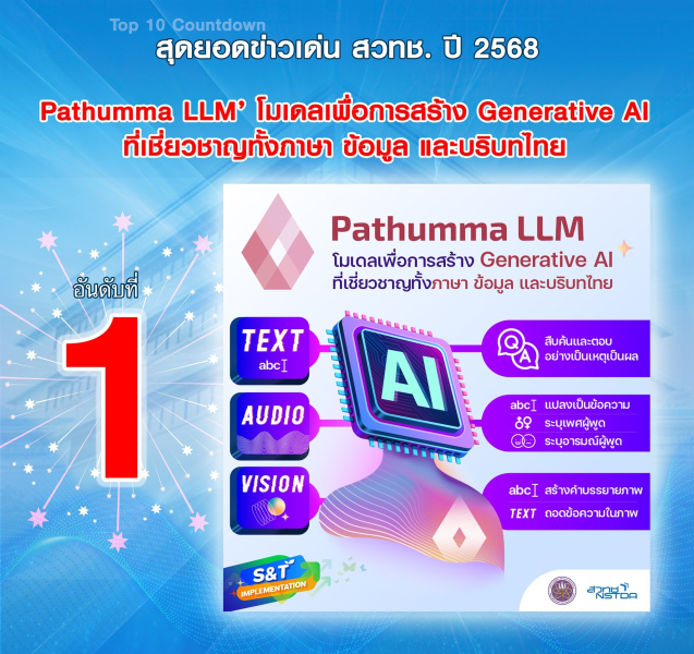 ในปี 2568 สวทช. โดย เนคเทค เปิดตัวเทคโนโลยีเด่น 3 รายการเสริมพลังให้กับ Pathumma LLM – ปัญญาประดิษฐ์ภาษาไทยสายเลือดไทย 100% ที่ถูกฝึกฝนด้วยข้อมูลภาษาไทยมหาศาล เพื่อให้เข้าใจภาษาและบริบทของประเทศได้อย่างลึกซึ้ง