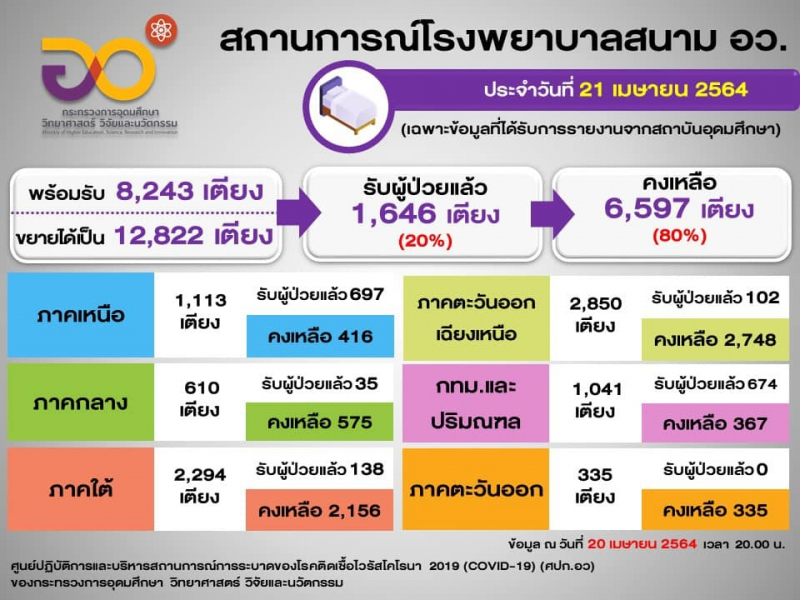 สถานการณ์ รพ.สนาม ของ อว (21 เมษายน 2564)