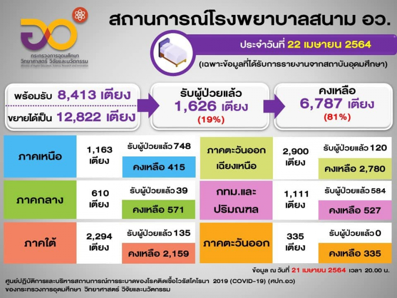 สถานการณ์ รพ.สนาม ของ อว. (22 เมษายน 2564)
