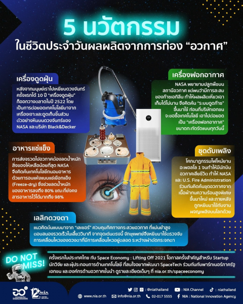 แต่รู้หรือไม่ ความจริงแล้วมีนวัตกรรมและเทคโนโลยีที่ถูกต่อยอดนำมาใช้ต่อบนพื้นโลก ซึ่งต้องบอกว่าหลายอย่างเป็นสิ่งที่คุ้นหูคุ้นตา และแม้แต่เราเองก็อาจจะใช้อยู่ในชีวิตประจำวันอีกด้วย… ว่าแต่จะมีอะไรบ้าง วันนี้ NIA รวบรวมบางส่วนมาให้ดูกัน!