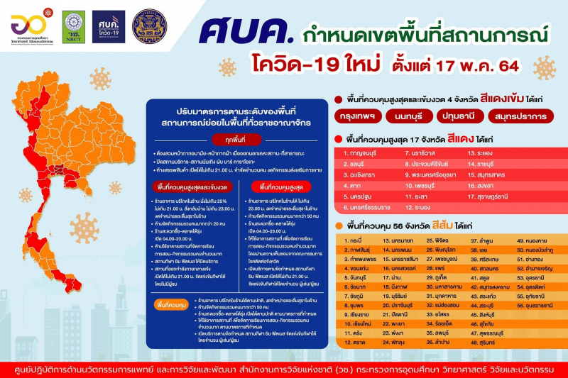 ศบค. กำหนดเขตพื้นที่สถานกรณ์โควิด-19 ใหม่ (ตั้งแต่ 17 พ.ค.64)