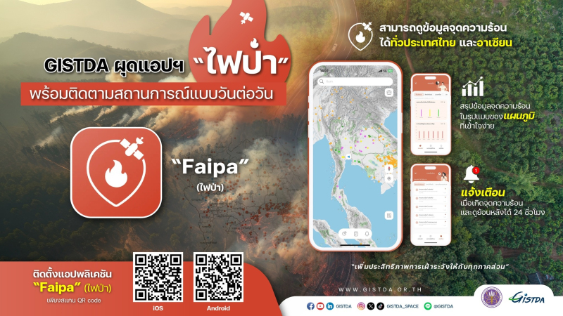 ปัจจุบัน GISTDA พัฒนาแอปพลิเคชัน ที่ชื่อว่า FAIPA หรือ ไฟป่า เพื่อใช้แจ้งเตือนจุดความร้อนที่เกิดขึ้นในระดับตำบล อำเภอ จังหวัด โดยใช้ข้อมูลจากดาวเทียมที่จะแสดงผลแบบ Near Real-Time ให้กับกลุ่มผู้ใช้งานหลักได้แก่ หน่วยงานที่รับผิดชอบในพื้นที่ อาทิ กรมป้องกันและบรรเทาสาธารณภัย กลุ่มอาสาสมัครต่างๆ ประชาชนในพื้นที่ เป็นต้น ทั้งนี้ แอปพลิเคชันตัวนี้สามารถดูข้อมูลจุดความร้อนได้ทั่วประเทศ รวมถึงประเทศในอาเซียน และสามารถดูย้อนหลังได้ตลอด 24 ชั่วโมงอีกด้วย
