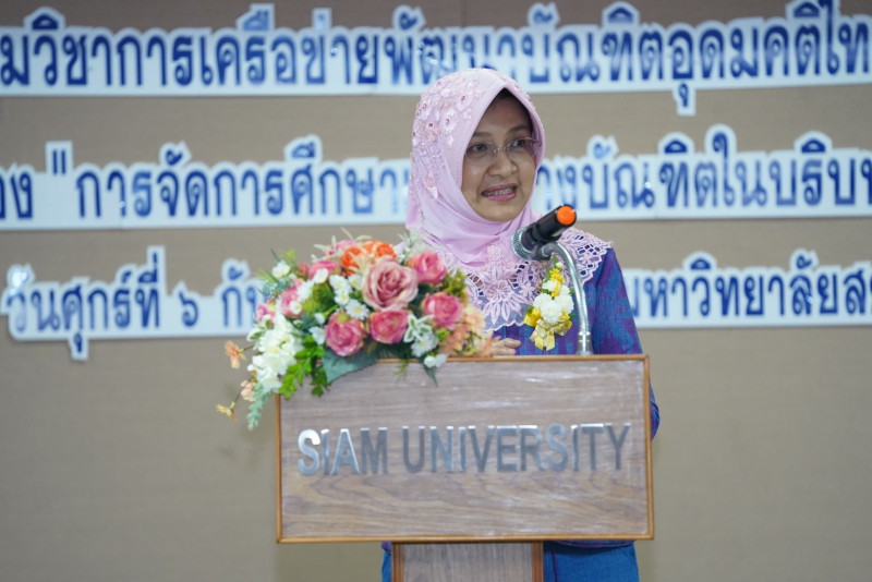 ด้าน รศ.ดร.อภิสิฏฐ์ กล่าวว่า ตามที่ ม.สยาม ร่วมกับ กระทรวง อว. และเครือข่ายพัฒนาบัณฑิตอุดมคติไทย เขตภาคกลาง จัดประชุมวิชาการของเครือข่าย ประจำปี 2567 เพื่อสร้างความรู้ความเข้าใจ และระดมความคิดเห็นเกี่ยวกับการพัฒนาอุดมศึกษาไทยในประเด็นท้าทาย และร่วมกันหาแนวทางเพื่อพัฒนาบัณฑิตอุดมคติไทย ให้มีความเป็นไปได้ในทิศทางเดียวกัน ในยุคที่สังคมมีการเปลี่ยนแปลงตลอดเวลา เพื่อเปิดโอกาสให้คณะผู้บริหาร คณาจารย์ นิสิตนักศึกษา และผู้สนใจทั่วไปได้มีส่วนร่วมในการเสนอแนวคิด และรูปแบบการพัฒนานิสิตนักศึกษา เพื่อเป็นบัณฑิตที่พึงประสงค์ของชาติ มีความรู้ความสามารถ มีคุณธรรมจริยธรรมอันดี พร้อมทั้งยังเป็นการเสริมสร้างให้สถาบันอุดมศึกษา และผู้มีส่วนเกี่ยวข้องตระหนักถึงความจำเป็นในการพัฒนาบัณฑิตให้มีคุณภาพ และเป็นคนดีของสังคมต่อไป