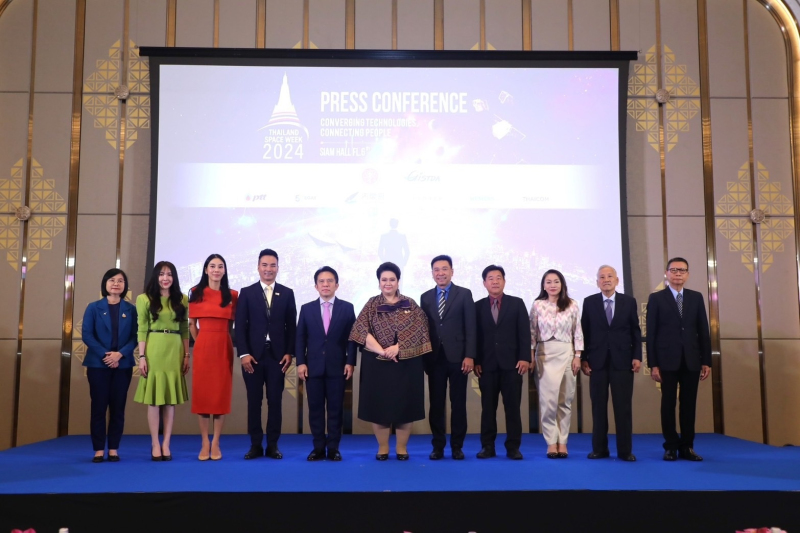 เมื่อวันที่ 17 ตุลาคม 2567 กระทรวงการอุดมศึกษา วิทยาศาสตร์ วิจัย และนวัตกรรม หรือ อว. โดย สำนักงานพัฒนาเทคโนโลยีอวกาศและภูมิสารสนเทศ (องค์การมหาชน) หรือ GISTDA จัดแถลงข่าวงาน Thailand Space Week 2024 “Converging Technologies, Connecting People” ณ โรงแรมอีสติน แกรนด์ พญาไท กรุงเทพฯ โดยจับมือกับพันธมิตรแข็งแกร่งอย่างการไฟฟ้าฝ่ายผลิตแห่งประเทศไทย, บริษัท SIEMENS, THAICOM, บริษัท ปตท. จำกัด (มหาชน), ISPACE and Cabinet office of Japan และหน่วยงานอื่นๆ อีกมากมายกว่า 30 บริษัท ทั้งในและต่างประเทศ เพื่อสร้างให้เป็นเวทีแห่งการเชื่อมโยงเทคโนโลยีขั้นสูงและผู้คนเข้าไว้ด้วยกัน รวมถึงอัปเดตเทรนด์อวกาศที่น่าสนใจ และการใช้ประโยชน์จากเทคโนโลยีอวกาศในปัจจุบัน ทั้งนี้ Thailand Space Week ถือเป็นเวทีด้านกิจการอวกาศที่ใหญ่ที่สุดของภูมิภาคเอเชียตะวันออกเฉียงใต้ โดยภายในงานได้รับเกียรติจาก นางสาวศุภมาส อิศรภักดี รัฐมนตรีว่าการกระทรวงการอุดมศึกษา วิทยาศาสตร์ วิจัย และนวัตกรรม เป็นประธานการแถลงข่าวการจัดงานในครั้งนี้