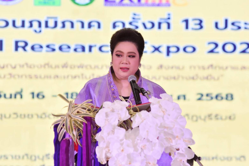เมื่อวันที่ 16 กุมภาพันธ์ น.ส.ศุภมาส อิศรภักดี รัฐมนตรีว่าการกระทรวงการอุดมศึกษา วิทยาศาสตร์ วิจัยและนวัตกรรม (อว.) เป็นประธานในพิธีเปิดงานมหกรรมงานวิจัยส่วนภูมิภาค ประจำปี 2568 ครั้งที่ 13 (Regional Research Expo 2025) ภายใต้แนวคิด “สานพลังเครือข่าย พลังภูมิปัญญาท้องถิ่นเพื่อพัฒนาเศรษฐกิจ สังคม การศึกษาและสิ่งแวดล้อม ด้วยงานวิจัยนวัตกรรมและเทคโนโลยี สู่การพัฒนาอย่างยั่งยืน” โดยมีนายศุภชัย ใจสมุทร ผู้ช่วยรัฐมนตรีว่าการกระทรวง อว. แพทย์หญิงเพชรดาว โต๊ะมีนา ที่ปรึกษารัฐมนตรีว่าการกระทรวง อว. รศ.มาลิณี จุโฑปะมา อธิการบดีมหาวิทยาลัยราชภัฏบุรีรัมย์และประธาน ทปอ.มรภ. ดร.วิภารัตน์ ดีอ่อง ผู้อำนวยการสำนักงานการวิจัยแห่งชาติ (วช.) กล่าวรายงาน นายจำเริญ แหวนเพ็ชร รองผู้ว่าราชการจังหวัดบุรีรัมย์ ให้การต้อนรับ พร้อมด้วยผู้บริหารกระทรวง อว. ผู้บริหารมหาวิทยาลัยเครือข่ายภาคตะวันออกเฉียงเหนือ หัวหน้าส่วนราชการจังหวัดบุรีรัมย์ เจ้าหน้าที่ทั้งภาครัฐและภาคเอกชน นักวิจัย และนักศึกษา เข้าร่วม ณ หอประชุมวิชชาอัตศาสตร์ มหาวิทยาลัยราชภัฏบุรีรัมย์