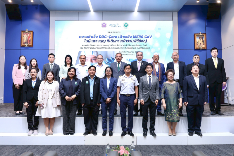 เมื่อวันที่ 30 เม.ย. นายศุภชัย ใจสมุทร ผู้ช่วยรัฐมนตรีประจำกระทรวงการอุดมศึกษา วิทยาศาสตร์ วิจัยและนวัตกรรม (อว.) เป็นประธานการแถลงข่าวความสำเร็จ DDC-Care เฝ้าระวังโรคทางเดินหายใจตะวันออกกลาง (MERS CoV) ในผู้แสวงบุญที่เดินทางเข้าร่วมพิธีฮัจญ์ เพื่อสร้างความตระหนักและความเข้าใจแก่ประชาชนเกี่ยวกับมาตรการป้องกันโรคและการดูแลสุขภาพของผู้เดินทางไปแสวงบุญและประกอบพิธีฮัจญ์ ณ ประเทศซาอุดิอาระเบีย ซึ่งเป็นความร่วมมือระหว่างกระทรวง อว. โดย สำนักงานพัฒนาวิทยาศาสตร์และเทคโนโลยีแห่งชาติ (สวทช.) กระทรวงสาธารณสุข (สธ.) โดยกรมควบคุมโรค และสำนักงานพัฒนารัฐบาลดิจิทัล (องค์การมหาชน) โดยมี ศ.ดร.ชูกิจ ลิมปิจำนงค์ ผู้อํานวยการ สวทช. นายแพทย์ภาณุมาศ ญาณเวทยส์กุล อธิบดีกรมควบคุมโรค สธ. นายแพทย์ดิเรก ขำแป้น รองอธิบดีกรมควบคุมโรค สธ. เข้าร่วม ณ ห้องแถลงข่าวชั้น 1 อาคารพระจอมเกล้า สำนักงานปลัดกระทรวง อว. (โยธี)
