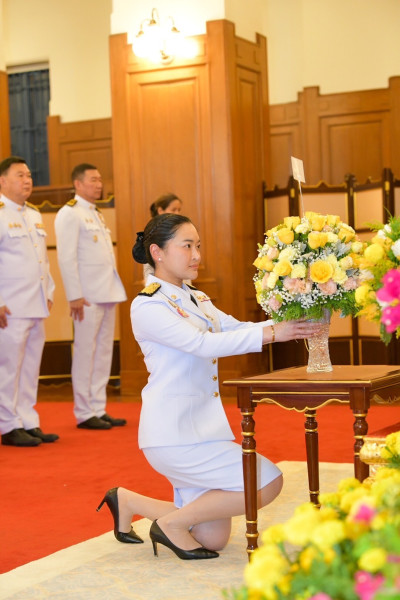 จากนั้น รมว.อว.พร้อมด้วยคณะผู้บริหาร อว. ได้เดินทางไปยังพระบรมมหาราชวัง เชิญแจกันดอกไม้ถวายพระพรชัยมงคล เข้าร่วมลงนามถวายพระพร พระบาทสมเด็จพระเจ้าอยู่หัว เพื่อร่วมแสดงออกถึงความจงรักภักดี และสำนึกในพระมหากรุณาธิคุณอันหาที่สุดมิได้ ณ ศาลาสหทัยสมาคม พระบรมมหาราชวัง