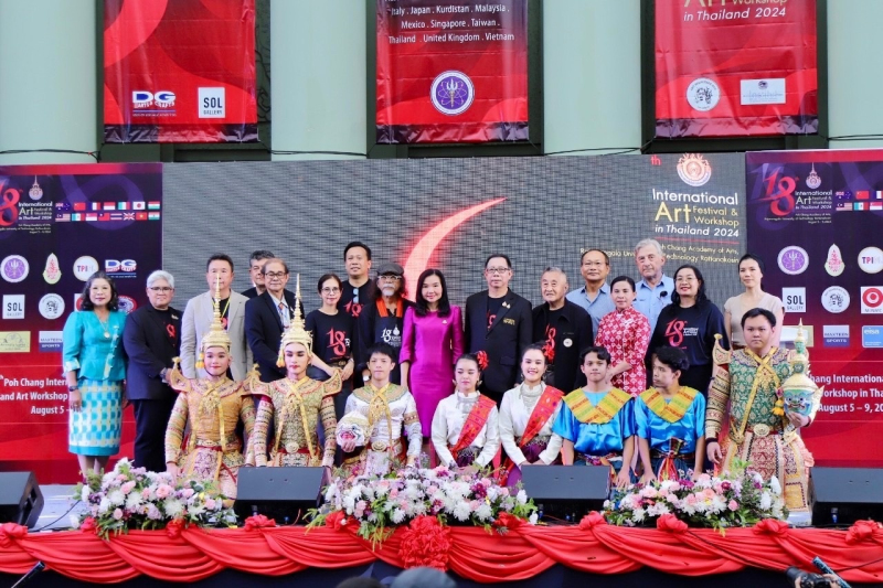 เมื่อวันที่ 8 สิงหาคม นางสาววราภรณ์ รุ่งตระการ ที่ปรึกษาด้านระบบบริหารการอุดมศึกษา วิทยาศาสตร์ วิจัยและนวัตกรรม สำนักงานปลัดกระทรวงการอุดมศึกษา วิทยาศาสตร์ วิจัยและนวัตกรรม (สป.อว.) ได้รับมอบหมายจาก นางสาวศุภมาส อิศรภักดี รัฐมนตรีว่าการกระทรวง อว. ให้เป็นประธานเปิดโครงการ 18th Poh Chang International Art Festival and Art Workshop in Thailand 2024 (เทศกาลศิลปะและปฏิบัติการทางทัศนศิลป์นานาชาติ ครั้งที่ 18) ซึ่งจัดขึ้นโดยวิทยาลัยเพาะช่าง มหาวิทยาลัยเทคโนโลยีราชมงคลรัตนโกสินทร์ (มทร.รัตนโกสินทร์) โดยมี รศ.ดร.อุดมวิทย์ ไชยสกุลเกียรติ อธิการบดี มทร.รัตนโกสินทร์ ผศ.สุรัฐ บุญทรง ผู้อำนวยการวิทยาลัยเพาะช่าง ดร.สุชาติ วงษ์ทอง ศิลปินสีน้ำ ผู้บริหารมหาวิทยาลัยและวิทยาลัย ศิลปินต่างชาติจาก 15 ประเทศ ศิลปินแห่งชาติ ศิลปินรับเชิญ ศิลปินเพาะช่าง และผู้ทรงคุณวุฒิ ให้การต้อนรับ ณ วิทยาลัยเพาะช่าง