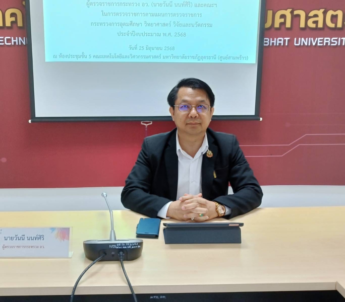 25 มิถุนายน 2568 นายวันนี นนท์ศิริ ผู้ตรวจราชการกระทรวงการอุดมศึกษา วิทยาศาสตร์ วิจัยและนวัตกรรม (ผตร.อว.) และคณะ ลงพื้นที่ตรวจราชการภายใต้โครงการสำคัญตามนโยบาย รมว.อว. “โครงการยกระดับเศรษฐกิจฐานรากกลุ่มเกษตรกรผลิตและแปรรูปผลิตภัณฑ์จากข้าวอินทรีย์ ภายใต้การใช้โมเดลเศรษฐกิจ BCG สู่เกษตรกรรมยั่งยืน” ของมหาวิทยาลัยราชภัฏอุดรธานี (มรภ.อุดรธานี) โดยมี ผศ.ดร.คณิศรา ธัญสุนทรสกุล อธิการบดี มรภ.อุดรธานี และคณะ ให้การต้อนรับ และ รศ.ดร.สุนทร สุทธิบาก รักษาการแทนรองอธิการบดีฝ่ายวิชาการ นำเสนอผลการดำเนินโครงการดังกล่าว