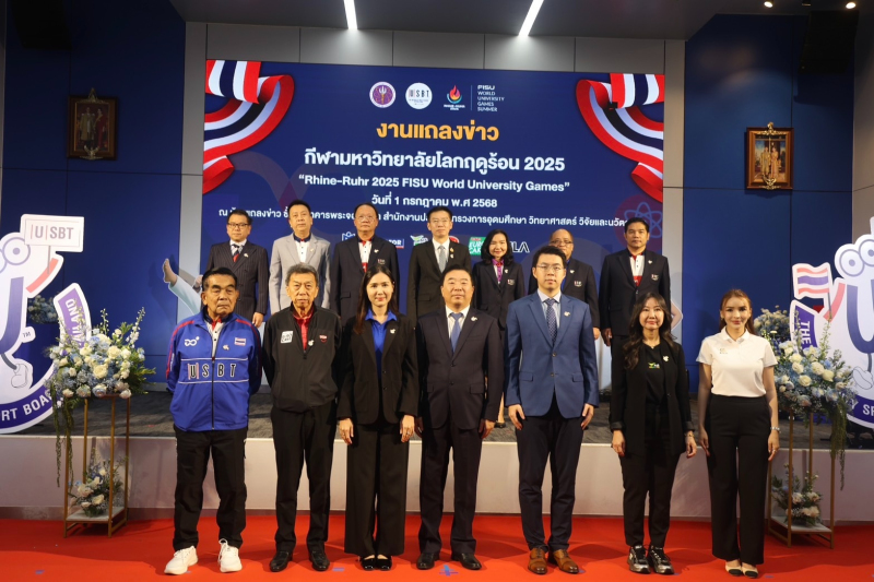 เมื่อวันที่ 1 กรกฎาคม ศ.ดร.ศุภชัย ปทุมนากุล ปลัดกระทรวงการอุดมศึกษา วิทยาศาสตร์ วิจัยและนวัตกรรม (อว.) เป็นประธานในพิธีเปิดงานแถลงข่าวและประชุมชี้แจงคณะนักกีฬาและเจ้าหน้าที่ในการเข้าร่วมการแข่งขันกีฬามหาวิทยาลัยโลกฤดูร้อน 2025 ภูมิภาคไรน์ - รูห์ร (Rhine - Ruhr 2025 FISU World University Games) ที่สหพันธ์สาธารณรัฐเยอรมนี โดยมี นางสาววราภรณ์ รุ่งตระการ รองปลัดกระทรวง อว. รศ.ภาสกร นันทพานิช และ รศ.ชาญชัย สุขสุวรรณ์ รองประธานกรรมการบริหารกีฬามหาวิทยาลัยแห่งประเทศไทย พร้อมด้วย ผู้บริหารสถาบันอุดมศึกษา ผู้ให้การสนับสนุน ผู้ฝึกสอน เจ้าหน้าที่ และนักกีฬา เข้าร่วมงาน ณ ห้องแถลงข่าว ชั้น 1 อาคารพระจอมเกล้า สำนักงานปลัดกระทรวง อว.