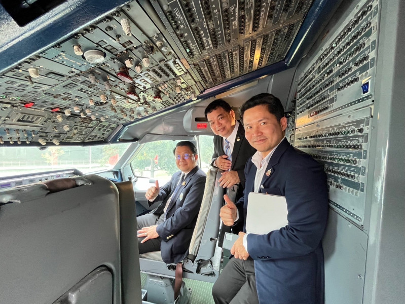 หลังจากนั้น ผตร.อว. พร้อมคณะได้เยี่ยมชม สถาบันการบินแห่งมหาวิทยาลัยเทคโนโลยีราชมงคลธัญบุรี ซึ่งได้รับการรับรองเป็นสถาบันฝึกอบรมนายช่างภาคพื้นดิน ทั้งจากสำนักงานการบินพลเรือนแห่งประเทศไทย(The Civil Aviation Authority of Thailand: CAAT) และ European Union Aviation Safety Agency หรือ EASA แห่งแรกของประเทศไทย ซึ่งใช้เป็นที่ฝึกปฏิบัติของนักศึกษาวิศวกรรมอิเล็กทรอนิกส์อากาศยาน (Avionics Engineering) และศึกษางานซ่อมแซมโครงสร้าง ระบบไฟฟ้า การทำงานเครื่องกลและชิ้นส่วนอุปกรณ์ต่างๆ ของอากาศยานประเภทต่างๆ เช่น เครื่องบิน Airbus A310 ซึ่งได้รับการสนับสนุนจากสายการบินThai Lion Air