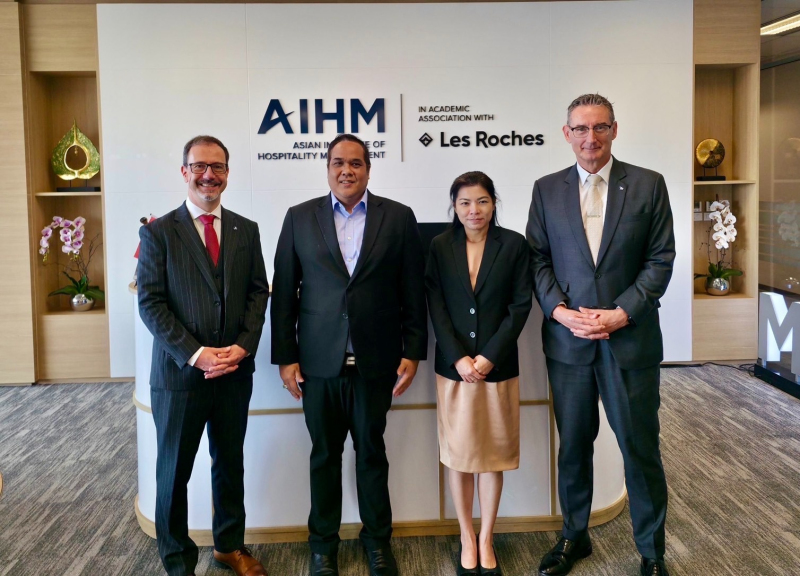 เมื่อวันที่ 8 สิงหาคม ดร.พันธุ์เพิ่มศักดิ์ อารุณี ผู้ช่วยปลัดกระทรวงการอุดมศึกษา วิทยาศาสตร์ วิจัยและนวัตกรรม (อว.) เข้าเยี่ยมชมพร้อมรับฟังรายงานความก้าวหน้าในการจัดการศึกษาของ “สถาบันการจัดการธุรกิจบริการและการโรงแรมแห่งเอเชีย (AIHM)“ ซึ่งจัดตั้งขึ้นจากความร่วมมือของกระทรวง อว. กับ Les Roaches โดย Les Roaches ถือเป็นสถาบันอุดมศึกษาที่จัดการศึกษาด้านธุรกิจบริการและการโรงแรมที่ติด อันดับ Top 3 ของโลก เพื่อส่งเสริมนโยบาย “การจัดการศึกษาโดยสถาบันอุดมศึกษาที่มีศักยภาพสูงจากต่างประเทศ” โดยมี Mr. Chris Meylan อธิการบดีสถาบันการจัดการธุรกิจบริการและการโรงแรมแห่งเอเชีย Mr. Warren Stanworth คณบดีฝ่ายการศึกษา สถาบันการจัดการธุรกิจบริการและการโรงแรมแห่งเอเชีย ให้การต้อนรับ ณ โรงแรมอวานี พลัส ริเวอร์ไซด์ ซึ่งเป็นสถานที่ตั้งและพื้นที่จัดการศึกษาในวิทยาเขตกรุงเทพของสถาบันฯ