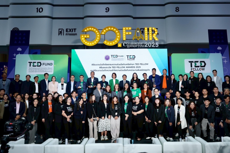 การประกาศรางวัล TED Fellow Awards 2025 : พลังเครือข่ายขับเคลื่อนนวัตกรรมไทย จัดขึ้นเป็นครั้งแรกเพื่อมอบรางวัลให้กับ TED Fellow ที่มีผลการดำเนินงานยอดเยี่ยมในแต่ละภูมิภาค โดยมีเกณฑ์ในการพิจารณาจากศักยภาพในการบ่มเพาะพัฒนาผู้ประกอบการจนได้รับการสนับสนุนทุนจาก TED Fund ภายใต้โครงการ TED Youth Startup และเป็นหน่วยที่ได้รับคะแนนความพึงพอใจสูงสุดจากผู้ใช้บริการ จำนวน 6 รางวัล ได้แก่ “รางวัล e Best of TED Fellow ภาคกลาง 1” ได้แก่ สำนักเคเอกซ์ มหาวิทยาลัยเทคโนโลยีพระจอมเกล้าธนบุรี (KX) “รางวัล The Best of TED Fellow ภาคกลาง 2” ได้แก่ ศูนย์พัฒนาผู้ประกอบการธุรกิจเทคโนโลยี สำนักงานพัฒนาวิทยาศาสตร์และเทคโนโลยีแห่งชาติ (BID) “รางวัล The Best of TED Fellow ภาคตะวันออกเฉียงเหนือ” ได้แก่ หน่วยวิจัยนโยบายวิทยาศาสตร์ เทคโนโลยีและนวัตกรรม มหาวิทยาลัยสุรนารี (STIP-RU) “รางวัล The Best of TED Fellow ภาคใต้” ได้แก่ ศูนย์บ่มเพาะวิสาหกิจ อุทยานวิทยาศาสตร์ มหาวิทยาลัยสงขลานครินทร์ (PSU-BIC) “รางวัล The Best of TED Fellow ภาคเหนือ” ได้แก่ อุทยานวิทยาศาสตร์และเทคโนโลยี มหาวิทยาลัยเชียงใหม่ (CMU_STeP) และ “รางวัล TED Fellow Outstanding Private Incubator” ได้แก่ บริษัท แบ็คสเตอร์ จำกัด (Backster)