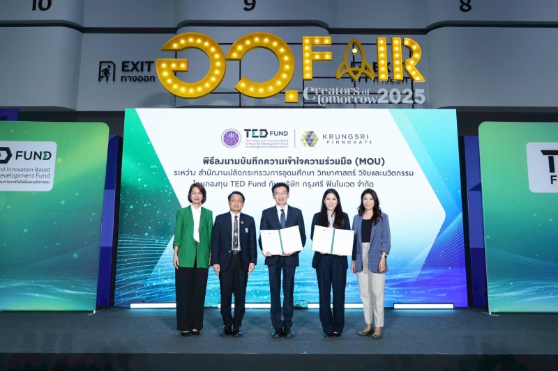 เมื่อวันที่ 14 สิงหาคม ศ.ดร.ศุภชัย ปทุมนากุล ปลัดกระทรวงการอุดมศึกษา วิทยาศาสตร์ วิจัยและนวัตกรรม (อว.) และประธานกรรมการบริหารกองทุนพัฒนาผู้ประกอบการเทคโนโลยีและนวัตกรรม (TED Fund) เป็นประธานในพิธีมอบรางวัล TED Fellow Awards 2025 ให้กับหน่วยงานที่มีผลการดำเนินงานยอดเยี่ยมในแต่ละภูมิภาค พร้อมเป็นประธานพิธีลงนามบันทึกข้อตกลงความร่วมมือ (MOU) ระหว่างสำนักงานปลัดกระทรวง อว. โดย TED Fund นำโดย ดร.วันนี นนท์ศิริ ผู้ตรวจราชการกระทรวง อว. กับ 4 เครือข่ายพันธมิตรของ TED Fund และการลงนาม MOU กับธนาคารยูโอบี จำกัด (มหาชน) และบริษัท กรุงศรี ฟินโนเวต จำกัด โดยมี นางสาวไปยดา หาญชัยสุขสกุล ผู้จัดการกองทุน TED Fund สื่อมวลชน และผู้สนใจเข้าร่วมงานอย่างคึกคัก ภายในงาน อว. แฟร์ 2025 ณ ศูนย์การประชุมแห่งชาติสิริกิติ์