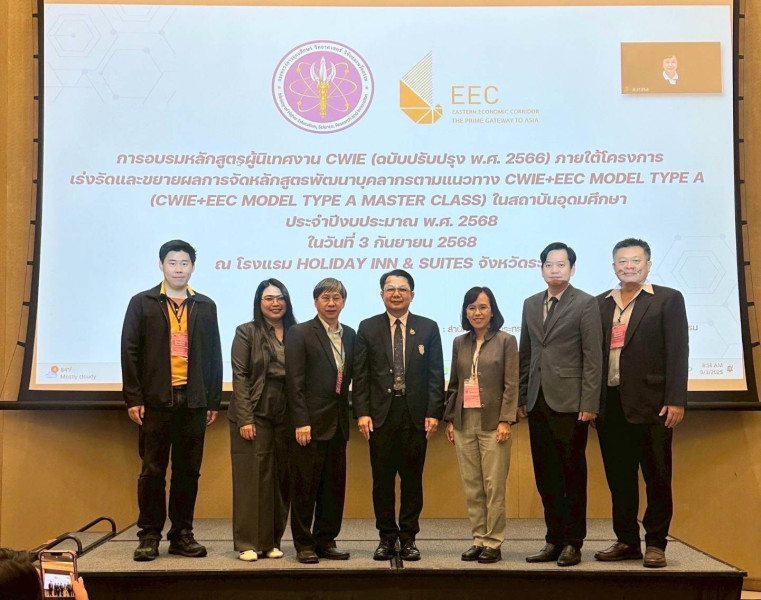 เมื่อวันที่ 3 กันยายน ดร.วันนี นนท์ศิริ ผู้ตรวจราชการกระทรวงการอุดมศึกษา วิทยาศาสตร์ วิจัยและนวัตกรรม (อว.) เป็นประธานในพิธีเปิดการอบรม “หลักสูตรผู้นิเทศงาน CWIE (ฉบับปรับปรุง พ.ศ. 2566)” ภายใต้ โครงการเร่งรัดและขยายผลการจัดหลักสูตรพัฒนาบุคลากรตามแนวทาง CWIE+EEC Model Type A (CWIE+EEC Model Type A Master Class) ประจำปีงบประมาณ พ.ศ. 2568 โดยมีผู้เข้าร่วมการอบรมกว่า 30 คน เข้าร่วม ณ โรงแรม Holiday Inn & Suites จังหวัดระยอง