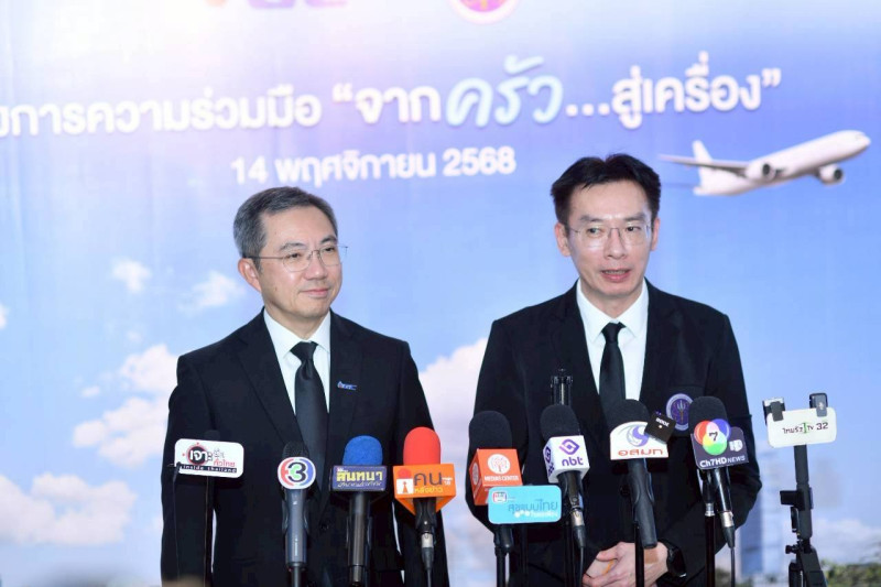 เมื่อวันที่ 14 พฤศจิกายน 68 ศ.ดร.ศุภชัย ปทุมนากุล ปลัดกระทรวงการอุดมศึกษา วิทยาศาสตร์ วิจัยและนวัตกรรม (อว.) เปิดโครงการความร่วมมือนโยบาย Quick Win “มหาวิทยาลัยสีเขียว (Green University)” ภายใต้โครงการความร่วมมือ “จากครัว...สู่เครื่อง” การจัดการน้ำมันพืชใช้แล้วเพื่อผลิตเป็นเชื้อเพลิงอากาศยานแบบยั่งยืน ระหว่างกระทรวง อว. ร่วมกับ บริษัท พีทีที โกลบอล เคมิคอล จำกัด (มหาชน) (GC) โดยมี นายณะรงค์ศักดิ์ จิวากานันต์ ประธานเจ้าหน้าที่บริหาร บริษัท พีทีที โกลบอล เคมิคอล จำกัด (มหาชน) ดร.วันนี นนท์ศิริ ผู้ตรวจราชการกระทรวง อว. นางเพ็ญนภา กัญชนะ ผู้ตรวจราชการกระทรวง อว. นายนิคม ปัญญาทวีกิจไพศาล รักษาการในตำแหน่งที่ปรึกษาด้านยุทธศาสตร์และ อววน. สำนักงานปลัดกระทรวง อว. และผู้บริหารหน่วยงาน สถาบันอุดมศึกษา เข้าร่วมพิธีพร้อมเยี่ยมชมนิทรรศการการผลิตเชื้อเพลิงอากาศยานแบบยั่งยืน (SAF) และรับฟังบรรยายเกี่ยวกับโครงการ “จากครัว...สู่เครื่อง” โดย คุณศุภฤกษ์ สุเสงี่ยม ผู้จัดการส่วนหน่วยงานเทคนิคโรงกลั่นน้ำมัน บริษัท พีทีที โกลบอล เคมิคอล จำกัด (มหาชน) และ คุณสุจิตรา เตรยาวรรณ ผู้จัดการฝ่ายขาย บริษัท เอนไรส์ ไบโอ ซัพพลาย จำกัด ณ ห้องแถลงข่าว ชั้น 1 อาคารพระจอมเกล้า สำนักงานปลัดกระทรวง อว. (ถนนพระรามที่ 6)
