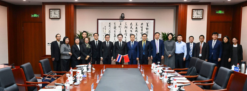 เมื่อวันที่ 26 พ.ย.ศ.ดร. ศุภชัย ปทุมนากุล ปลัดกระทรวงการอุดมศึกษา วิทยาศาสตร์ วิจัยและนวัตกรรม(อว.) เป็นประธานการประชุมคณะกรรมการความร่วมมือไทย - จีนด้านวิทยาศาสตร์และเทคโนโลยี ครั้งที่ 5 ร่วมกับ ดร. เฉิน เจียฉาง ผู้ช่วยรัฐมนตรีว่าการกระทรวงวิทยาศาสตร์และเทคโนโลยี สาธารณรัฐประชาชนจีน ณ กระทรวงวิทยาศาสตร์และเทคโนโลยี กรุงปักกิ่ง โดยมีคณะผู้แทนของกระทรวง อว.เข้าร่วมการประชุมได้แก่ ผศ.ดร.วิภู รุโจปการ ผอ.สถาบันวิจัยดาราศาสตร์แห่งชาติ (สดร.) ดร.ชัย วุฒิวิวัฒน์ชัย ผอ.ศูนย์เทคโนโลยีอิเล็กทรอนิกส์และคอมพิวเตอร์แห่งชาติ สำนักงานพัฒนาวิทยาศาสตร์และเทคโนโลยีแห่งชาติ (พว.) ดร.ลักษมณ สมานสินธุ์ ผอ.กองการต่างประเทศ สป.อว. ดร.พสุภา ชินวรโสภาค อัครราชทูตที่ปรึกษา (ฝ่ายการอุดมศึกษาวิทยาศาสตร์ วิจัยและนวัตกรรม) ประจำสถานเอกอัครราชทูต ณ กรุงปักกิ่ง และผู้แทนจากสำนักงานพัฒนาเทคโนโลยีอวกาศและภูมิสารสนเทศ (สทอภ.) โดยการประชุมคณะกรรมการความร่วมมือไทย-จีนครั้งนี้จัดในวาระที่ครบรอบ 50 ปีแห่งการสถาปนาความสัมพันธ์ทางการทูตไทย-จีน โดยทั้งสองฝ่ายได้มีการแลกเปลี่ยนเชิงนโยบายการพัฒนาวิทยาศาสตร์และเทคโนโลยี การรายงานผลการดำเนินงานของคณะทำงานร่วมไทย-จีนและหารือถึงกรอบความร่วมมือในอนาคต