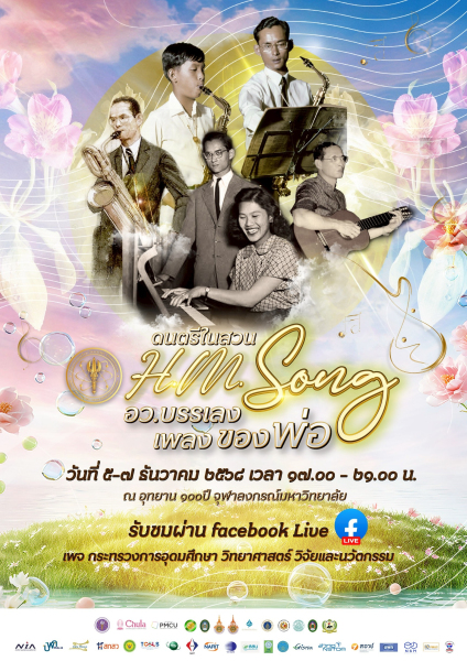 กระทรวง อว. จัด "ดนตรีในสวน : H.M. Song อว. บรรเลงเพลงของพ่อ" ทั่วประเทศ วันที่ 5-7 ธ.ค.นี้ ชวนร่วมดื่มด่ำบทเพลงพระราชนิพนธ์ ส่วนกลางจัด ณ อุทยาน 100 ปี จุฬาลงกรณ์มหาวิทยาลัย ส่วนภูมิภาคจัดที่สถาบันอุ ...