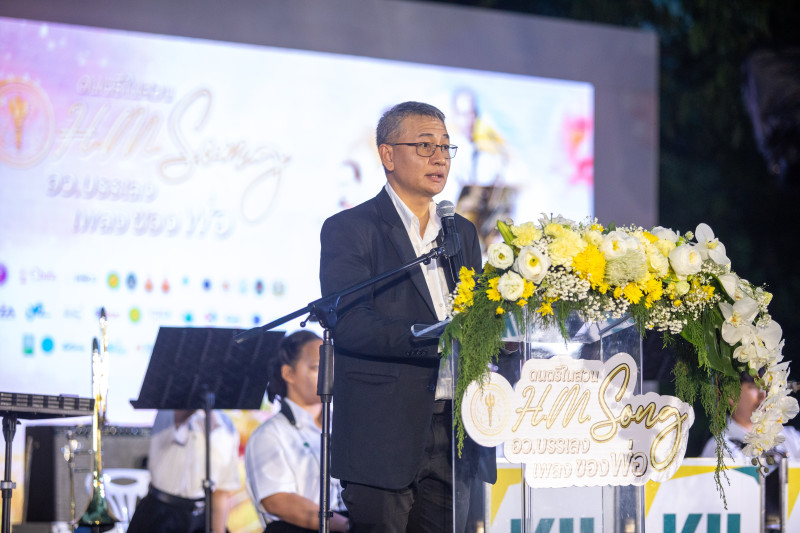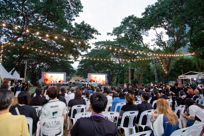 จากนั้น รองปลัดกระทรวง อว. กล่าวว่า ความพิเศษของปีนี้ คือเราตั้งใจน้อมรำลึกถึงพระมหากรุณาธิคุณของทั้งสองพระองค์ควบคู่กัน ทั้งพระบาทสมเด็จพระบรมชนกาธิเบศร มหาภูมิพลอดุลยเดชมหาราช บรมนาถบพิตร และสมเด็จพระนางเจ้าสิริกิติ์ พระบรมราชินีนาถ พระบรมราชชนนีพันปีหลวง ในฐานะคู่พระบารมีที่ทรงทุ่มเทพระวรกายและพระราชหฤทัยเพื่อชาติบ้านเมืองตลอดมา งานนี้จึงเป็นเสมือนการรวมดวงใจของพสกนิกรในการถวายน้อมความอาลัย และสืบสานพระราชปณิธานผ่านเสียงดนตรีอันงดงาม