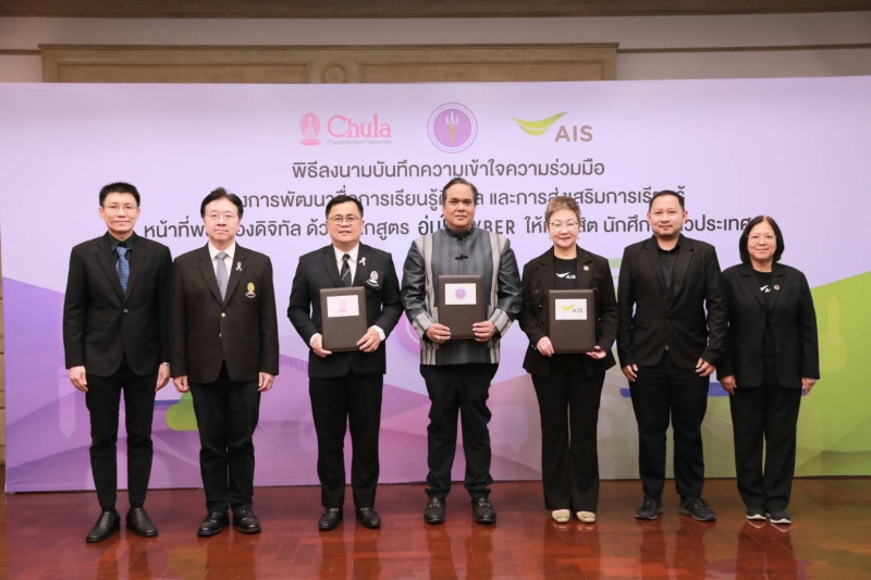 เมื่อวันที่ 26 ธ.ค. 68 กระทรวงการอุดมศึกษา วิทยาศาสตร์ วิจัยและนวัตกรรม (อว.) จับมือ จุฬาลงกรณ์มหาวิทยาลัย และ AIS ลงนามความร่วมมือยกระดับการศึกษาไทย เปิดตัวหลักสูตร “อุ่นใจไซเบอร์” หัวข้อ AI Literacy มุ่งสร้างภูมิคุ้มกันดิจิทัลและทักษะการใช้ปัญญาประดิษฐ์ (AI) อย่างสร้างสรรค์และปลอดภัยให้นิสิตนักศึกษาทั่วประเทศ ชูจุดเด่นเรียนฟรีออนไลน์ สะสมชั่วโมงเทียบหน่วยกิตได้จริง เตรียมเปิดให้เรียนพร้อมกัน กุมภาพันธ์ 2569 โดยมี ดร.พันธ์ุเพิ่มศักดิ์ อารุณี รักษาราชการแทนรองปลัดกระทรวง อว. พร้อมด้วย ศ.ดร.วิเลิศ ภูริวัชร อธิการบดีจุฬาลงกรณ์มหาวิทยาลัย และ นางสายชล ทรัพย์มากอุดม หัวหน้าคณะผู้บริหารด้านสื่อสารองค์กรและรัฐกิจสัมพันธ์ เอไอเอส ได้ร่วมพิธีลงนามบันทึกความเข้าใจความร่วมมือ ณ อาคารจามจุรี 4 จุฬาลงกรณ์มหาวิทยาลัย