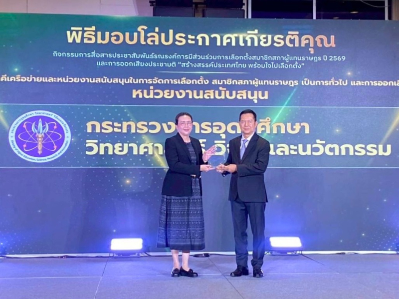 ทั้งนี้ สำนักงานคณะกรรมการการเลือกตั้ง (กกต.) ได้จัดให้มีการมอบโล่ประกาศเกียรติคุณรวม 5 ประเภท ได้แก่ (1) จังหวัดที่มีร้อยละผู้มาใช้สิทธิเลือกตั้งสมาชิกสภาผู้แทนราษฎรมากที่สุด (2) จังหวัดที่มีร้อยละผู้มาใช้สิทธิเลือกตั้งเพิ่มขึ้นจากปี 2566 มากที่สุด (3) จังหวัดที่มีร้อยละบัตรเสียน้อยที่สุด (4) ภาคีเครือข่ายและหน่วยงานที่สนับสนุนการจัดการเลือกตั้งสมาชิกสภาผู้แทนราษฎรเป็นการทั่วไปและการออกเสียงประชามติ และ (5) Social Media Platforms ที่ให้ความร่วมมือสนับสนุนการประชาสัมพันธ์การเลือกตั้งและการออกเสียงประชามติ โดยกระทรวง อว. ได้รับมอบโล่ประกาศเกียรติคุณในประเภทที่ 4 ซึ่งสะท้อนถึงบทบาทความร่วมมือในการสนับสนุนการจัดการเลือกตั้งอย่างมีประสิทธิภาพและการมีส่วนร่วมของภาคส่วนต่าง ๆ ในสังคมไทย