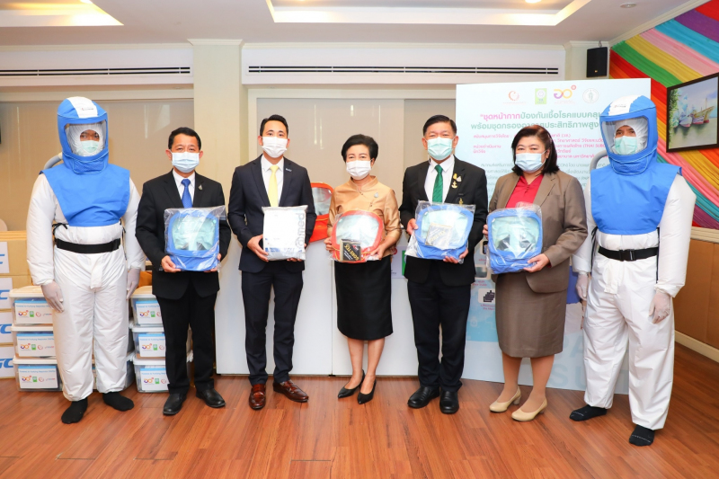 ส่วน อุปกรณ์ป้องกันส่วนบุคคลเพื่อรับมือกับสถานการณ์ COVID–19 ซึ่งเป็นนวัตกรรมที่ได้รับการสนับสนุนจากบริษัท พีทีที โกลบอล เคมิคอล จำกัด (มหาชน) นั้น ดร.ชญาน์ จันทวสุ ผู้ช่วยกรรมการผู้จัดการใหญ่ สายงานบริหารความยั่งยืนและภาพลักษณ์องค์กร บริษัท พีทีที โกลบอล เคมิคอล จำกัด (มหาชน) ได้ส่งมอบให้แก่ นางศิลปสวย ระวีแสงสูรย์ ปลัดกรุงเทพมหานคร และ นพ.สุขสันต์ กิตติศุภกร ผู้อำนวยการสำนักการแพทย์ กรุงเทพมหานคร