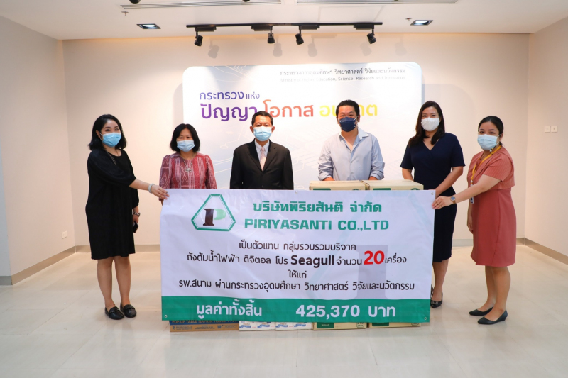 วันนี้ (11 พฤษภาคม 2564) ศ.ดร.นพ.สิริฤกษ์ ทรงศิวิไล ปลัดกระทรวงการอุดมศึกษา วิทยาศาสตร์ วิจัยและนวัตกรรม (อว.) รับมอบสิ่งของบริจาค จาก บริษัท พิริยะสันติ จำกัด ผู้แทนจำหน่ายเครื่องครัวและผลิตภัณฑ์ seagull เพื่อสนับสนุนการใช้ประโยชน์ในโรงพยาบาลสนามของ อว. โดยรายนามสิ่งของบริจาคมีดังต่อไปนี้ หม้อต้มน้ำไฟฟ้า ดิจิตอล นกนางนวล จำนวน 10 ใบ ขนาด 21 L, หม้อต้มน้ำไฟฟ้า ดิจิตอล นกนางนวล จำนวน 10 ใบ ขนาด 36.5 L และกระดาษทิชชู่ จำนวน 50 แพ็ค รวมมูลค่าทั้งสิ้น 425,370 บาท ณ อาคารพระจอมเกล้า ชั้น 1 สำนักงานปลัดกระทรวง ถนนโยธี