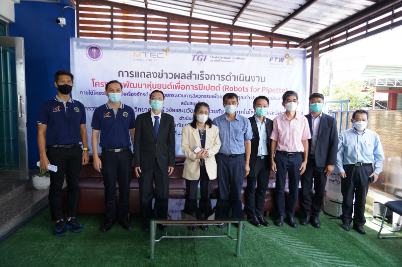 (12 พฤษภาคม 2565 ) สำนักงานปลัดกระทรวงการอุดมศึกษา วิทยาศาสตร์ วิจัยและนวัตกรรม (สป.อว.) โดย กองส่งเสริมและประสานเพื่อประโยชน์ทางวิทยาศาสตร์ วิจัยและนวัตกรรม (กปว.) ศูนย์เทคโนโลยีโลหะและวัสดุแห่งชาติ (MTEC)  ร่วมกับ สถาบันไทย - เยอรมัน (TGI) ศูนย์พันธุศาสตร์การแพทย์ โรงพยาบาลจุฬาลงกรณ์ และ บริษัท พี ที ดับบลิว เทคโนโลยี จำกัด ได้จัดงานแถลงข่าวความสำเร็จในการดำเนินการพัฒนาสร้างหุ่นยนต์เพื่อการปิเปตต์ (Robots for pipette) ซึ่งเป็นผลงานที่พัฒนาภายใต้โครงการพัฒนาสร้างเครื่องจักรต้นแบบด้วยกระบวนการวิศวกรรมเพื่อการสร้างสรรค์คุณค่า ประจำปีงบประมาณ พ.ศ.2563 ณ บริษัท พี ที ดับบลิว เทคโนโลยี อ.คลองหลวง จ.ปทุมธานี