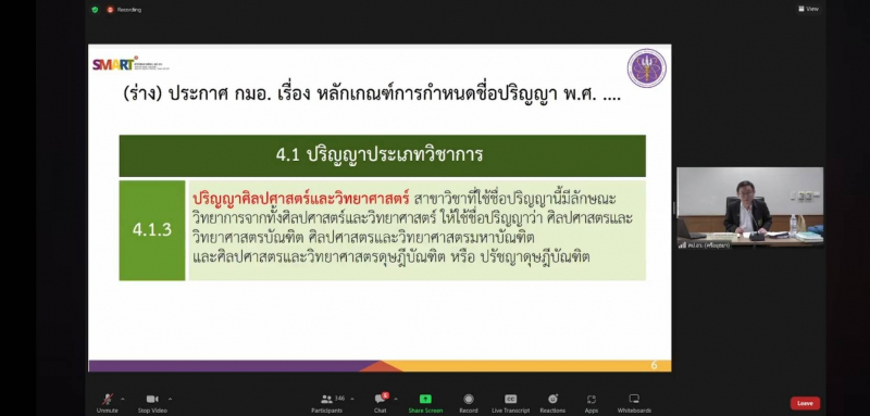 (17 สิงหาคม 2565) สำนักงานปลัดกระทรวงการอุดมศึกษา วิทยาศาสตร์ วิจัย และนวัตกรรม (สป.อว.) โดย กองยกระดับคุณภาพการจัดการศึกษาระดับอุดมศึกษา จัดโครงการประชุมสัมมนาประชาพิจารณ์ร่างประกาศคณะกรรมการมาตรฐานการอุดมศึกษาที่เกี่ยวข้องกับมาตรฐานการอุดมศึกษา เพื่อให้สถาบันอุดมศึกษาทั้งในและนอกสังกัด หน่วยงานและผู้ที่มีส่วนเกี่ยวข้องได้รับความรู้ ความเข้าใจเกี่ยวกับกฎหมายลำดับรองที่เกี่ยวข้องกับมาตรฐานการอุดมศึกษา จำนวน 3 ฉบับ (1) ร่างประกาศคณะกรรมการมาตรฐานการอุดมศึกษา เรื่อง หลักเกณฑ์การกำหนดชื่อปริญญา พ.ศ. .... (2) ร่างประกาศคณะกรรมการมาตรฐานการอุดมศึกษา เรื่อง มาตรฐานหลักสูตรควบระดับปริญญาตรีสองปริญญา หรือหลักสูตรควบระดับปริญญาโทสองปริญญา ในสาขาวิชาที่ต่างกัน พ.ศ. .... (3) ร่างประกาศคณะกรรมการมาตรฐานการอุดมศึกษา เรื่อง มาตรฐานหลักสูตรควบระดับปริญญาตรีและปริญญาโทและมาตรฐานหลักสูตรควบระดับปริญญาโทและปริญญาเอกในสถาบันอุดมศึกษา พ.ศ. .... ณ ห้องประชุมศาสตราจารย์เกียรติคุณเกษม วัฒนชัย ชั้น 18 ห้องเอ อาคารอุดมศึกษา 2 สำนักงานปลัดกระทรวงการอุดมศึกษา วิทยาศาสตร์ วิจัย และนวัตกรรม